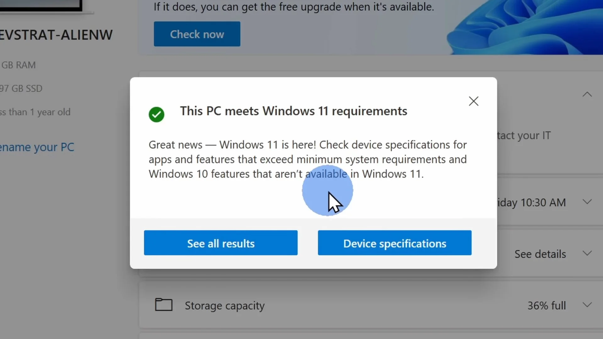 If your device is compatible, the tool will confirm that it can run Windows 11. If not, it will specify which components need to be upgraded.